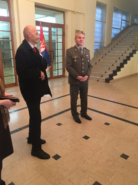 Direktor Medija centra ,,Odbrana'' pukovnik Stevica Karapandžin, takođe je poželeo dobrodošlicu studentima u Centralnom domu Vojske Srbije, nekadašnjem ,,Ratničkom domu''. Pukovnik Stevica Karapandžin govorio je o istoriji Vojske Srbije, kao i o izdanjima Medija centra iz oblasti geopolitike, vojnog saniteta i istoriografije.