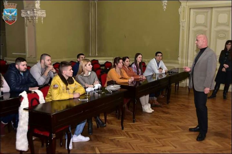Studenti su takođe posetili i Gradsku upravu Zrenjanin gde ih je dočekao gradonačelnik Zrenjanina Čedomir Janjić, dok su prethodno čuli priču o istorijskom značaju same zgrade u kojem se danas nalazi opštinska uprava grada Zrenjanina. Gradska kuća u Zrenjaninu poznata je i kao Županijska palata a nalazi se na Trgu Slobode. Na mestu stare županijske zgrade podignuta je nova po nacrtima inž. Josifa Fišera u barokonom stilu. U holu zgrade pored ulaza u Svečanu salu, nalazi se jedinstveni ,,Pantelićev sat'' iz 1902. godine čiji mehanizam istovremeno pokreće četiri međusobno udaljena brojčanika. Sat je pokazivao indentično vreme u svečanoj sali, na balkonu, baštenskoj fasadi i u samom holu na satnom mehanizmu.