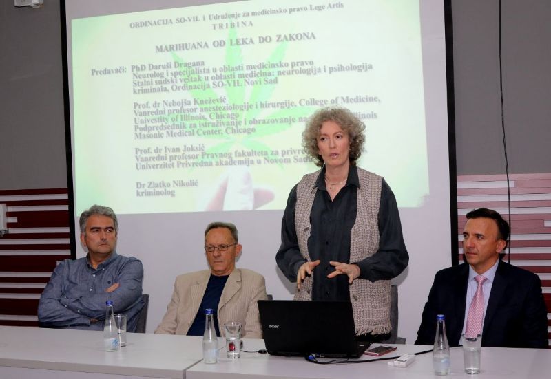 Tribina je izazvala izuzetno interesovanje studenata Pravnog fakulteta kao i osoblja iz struke medicine i farmacije koji su učestvovali na tribini. Dr. sci Dragana Daruši je ukratko prikazala sastav same biljke kanabis koja je bogata kanbionidima, koji deluje na sistem receptora u svakom organizmu. Doktorka Daruši izjavila je - "Kada se zakonski budu rešile određene nedoumice, koje će propisati pravila i norme, kao kod svih lekovitih sredstava, tada će na lekarima biti da li će prepisati, preporučiti ili ne svojim pacijentima ovu upotrebu". Prof. dr Nebojša Knežević je napomenuo da u Kanadi ove godine je odobrena primena marihuane u tzv. "rekreacione svrhe" ali da se na federalnom nivou nije ništa promenilo, da je i dalje zabranjena supstanca. Dr Zlatko Nikolić je istakao da je protiv takve ideje koja se tiče legalizacije, jer niko nije dokazao opravdanost takvog pristupa. Prof. dr Ivan Joksić je govorio i o narkomaniji i istakao: - "Kriminološki posmatrano, narkomanija je delikt bez zločina, jer sam počinilac je i žrtva".