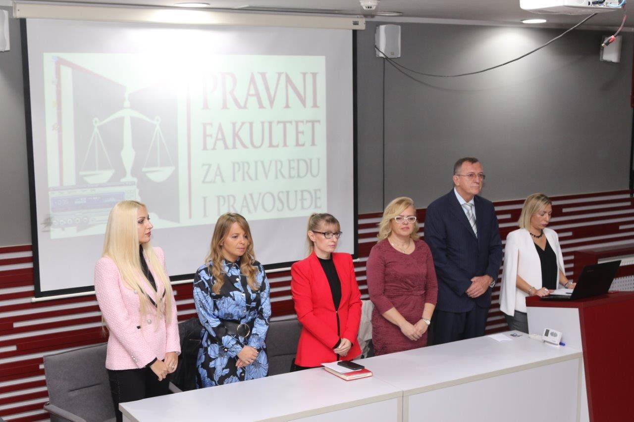 Nakon intoniranja himne Republike Srbije, brucoše Pravnog fakulteta za privredu i pravosuđe pozdravila je prof. dr Marijana Dukić Mijatović, državni sekretar u Ministarstvu prosvete, nauke i tehnološkog Republike Srbije razvoja istakla je da je Pravni fakultet za privredu i pravosuđe napravio dobar odabir studijskih programa i da studentima pruža kvalitetno znanje koje im je i potrebno, s obzirom da ispred Ministarstva prosvete, nauke i tehnološkog razvoja primećuju da je veliki broj alumnista koji izlaze sa ovog fakulteta zaposleno u tužilaštvu, sudovima, privredi i da su veoma uspešni pravnici.