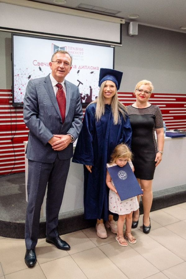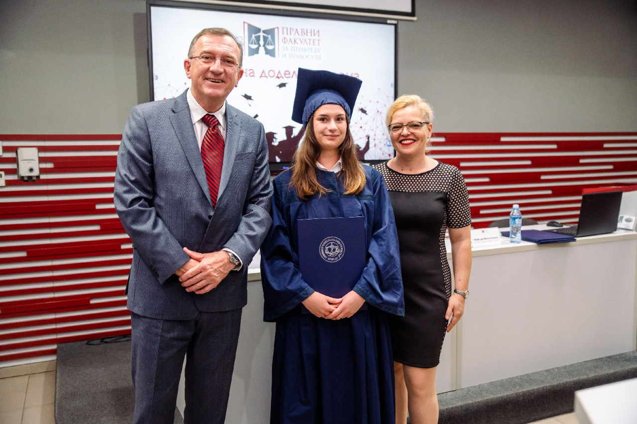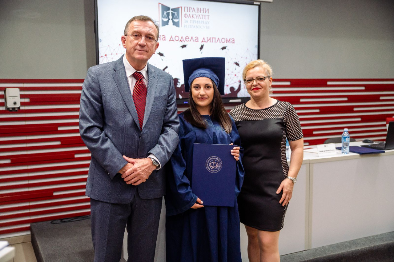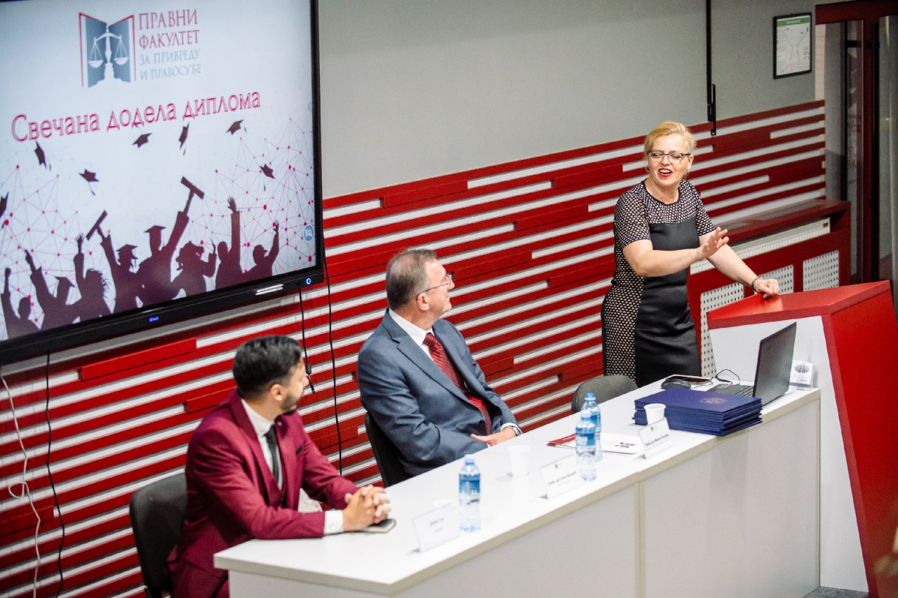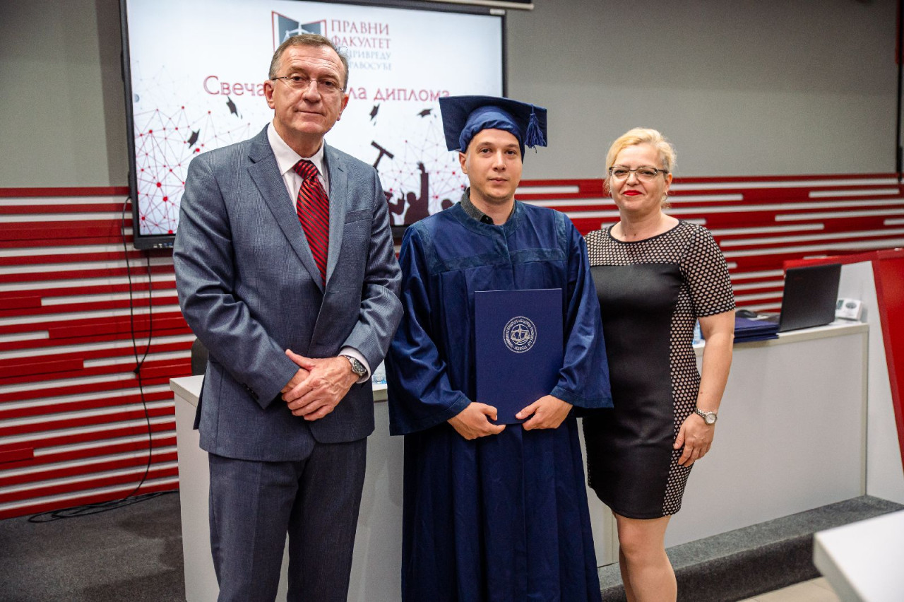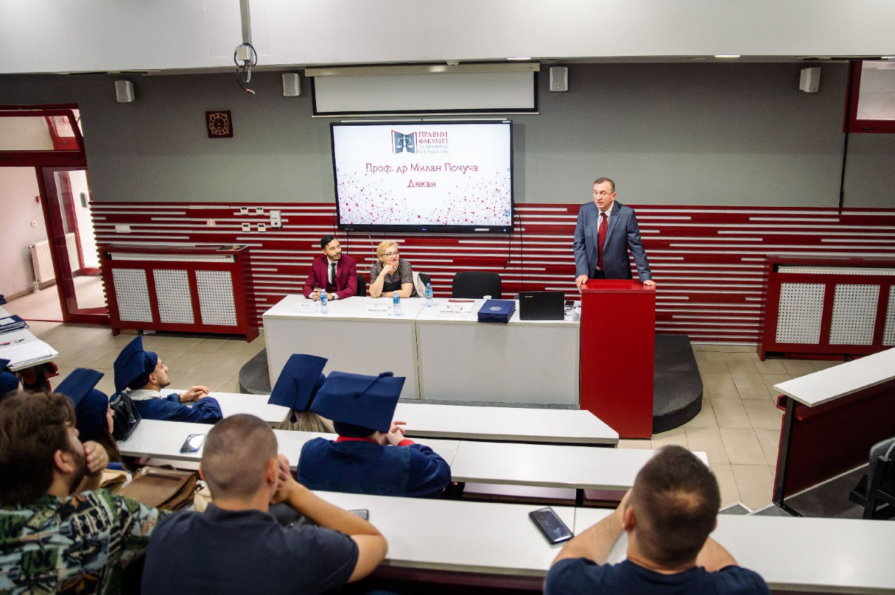 Nakon intoniranja univerzitetske himne „Gaudeamus Igitur“, diplomirane pravnike i njihove roditelje i prijatelje pozdravio je dekan fakulteta prof. dr Milan Počuča koji im je čestitao na uspešno završenim osnovnim akademskim studijama. Naglasio je da je iza njih dug i nimalo lak put koji su oni uspešno prešli, kao i da njihovi roditelji treba da budu ponosni.