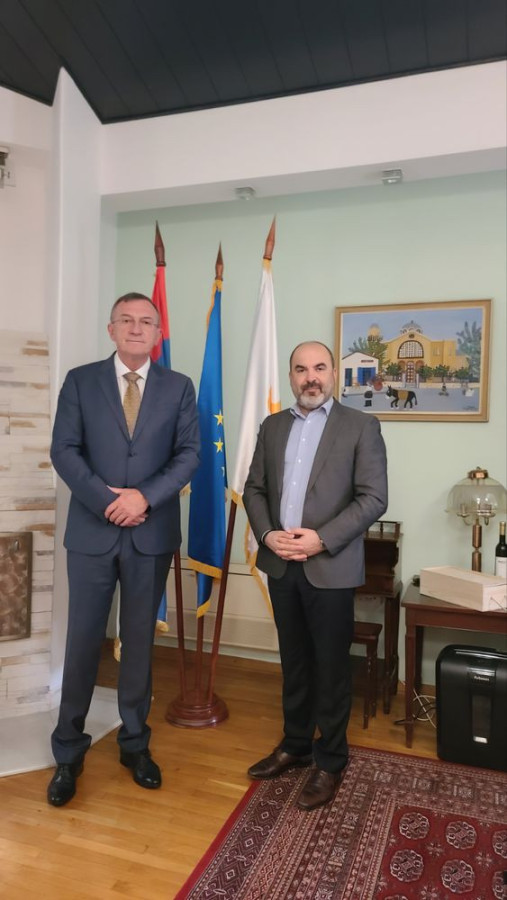 Prof. dr Milan Počuča, dekan Pravnog fakulteta za privredu i pravosuđe i Njegova Ekselencija gospodin Andreas Fotiu, ambasador Republike Kipar u Srbiji sastali su se u petak, 31. maja 2024. godine u prostorijama Ambasade u Beogradu.