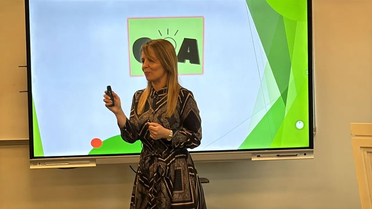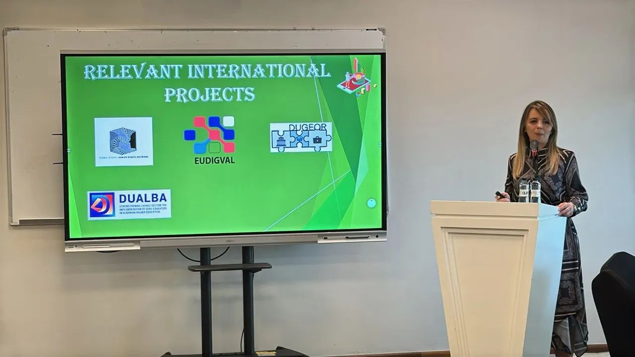 Prof. dr Marijana Mladenov je tokom posete upoznala nastavno osoblje i studente AUE sa sadržajem i implementacijom CBHE međunarodnih projekata DUALBA i DUGEOR, kao i rezultatima istraživanja u domenu digitalnih ljudskih prava u okviru projekta Žan Mone EUDIGVAL.