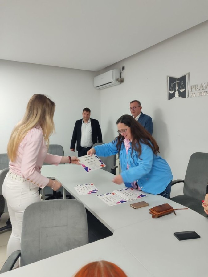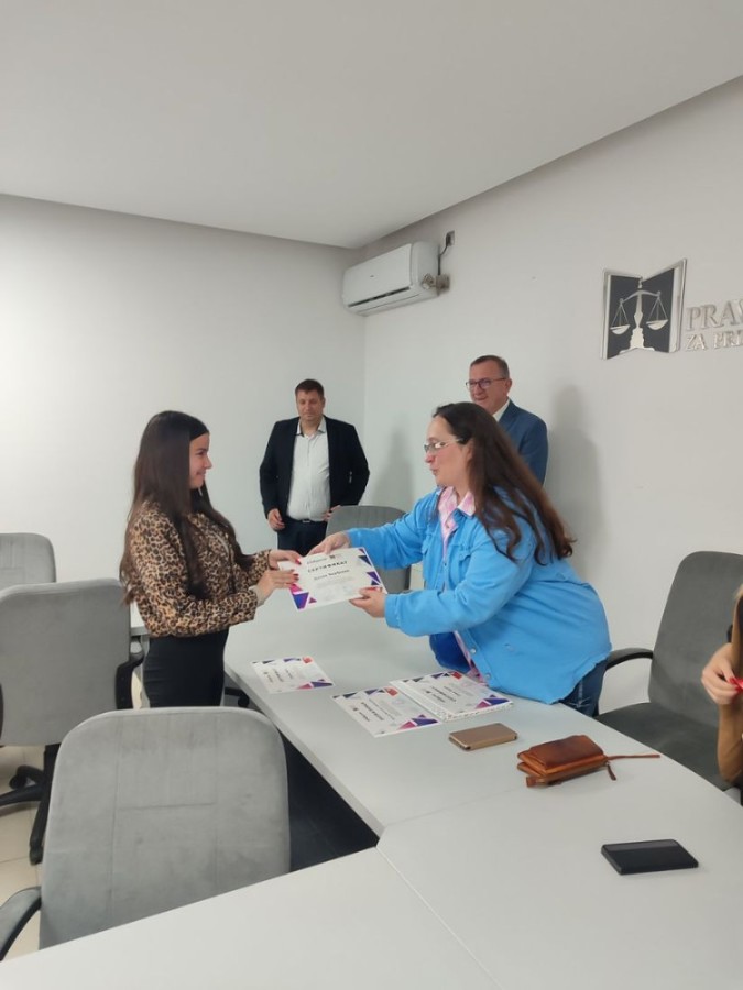 Sertifikate su polaznicima Škole ljudskih prava uručili prof. dr Milan Počuča, dekan Pravnog fakulteta za privredu i pravosuđe u Novom Sadu, doc. dr Dragana Ćorić, Pokrajinska zaštitnica građana - ombudsmanka i prof. dr Jelena Matijašević, prodekan za nauku na Pravnom fakultetu za privredu i pravosuđe u Novom Sadu.