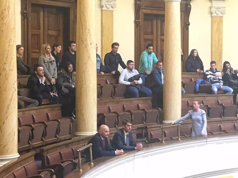 Studenti Pravnog fakulteta i Fakulteta za ekonomiju i inženjerski menadžment pod rukovodstvom prof. dr Zorana Pavlovića, šefa krivičnopravne katedre Pravnog fakulteta i asistentkinje Tatjane Vučurević sa Fakulteta za ekonomiju i inženjerski menadžment posetili su Narodnu skupštinu, Republike Srbije.