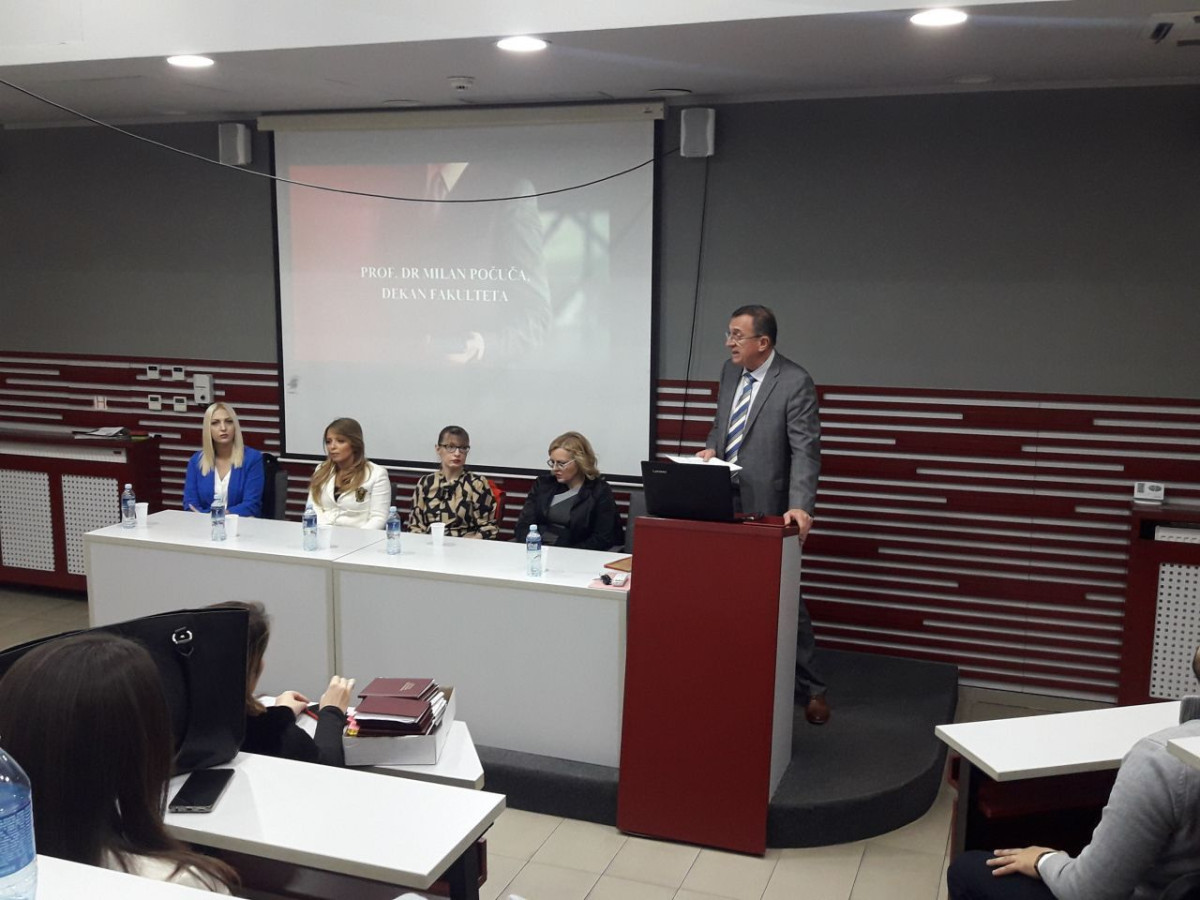 Nakon intoniranja himne Republike Srbije, master studente i studentkinje Pravnog fakulteta za privredu i pravosuđe pozdravio je dekan fakulteta prof. dr Milan Počuča koji je istakao važnost da se nakon završenih osnovnih studija nastavi formalno obrazovanja i upišu master studije kako bi se znanje stečeno na osnovnim studijama proširilo i dodatno podstaklo buduću karijeru pravnika.