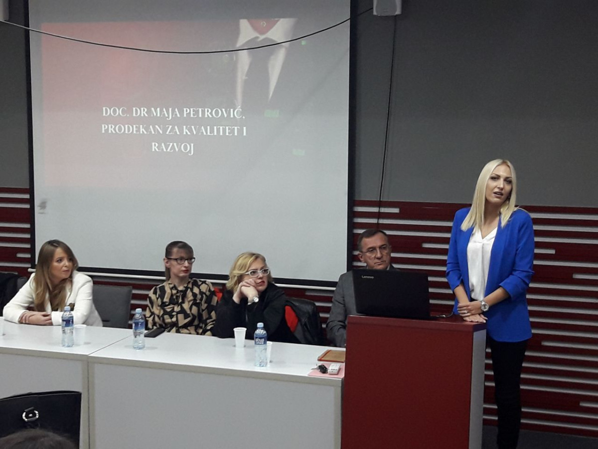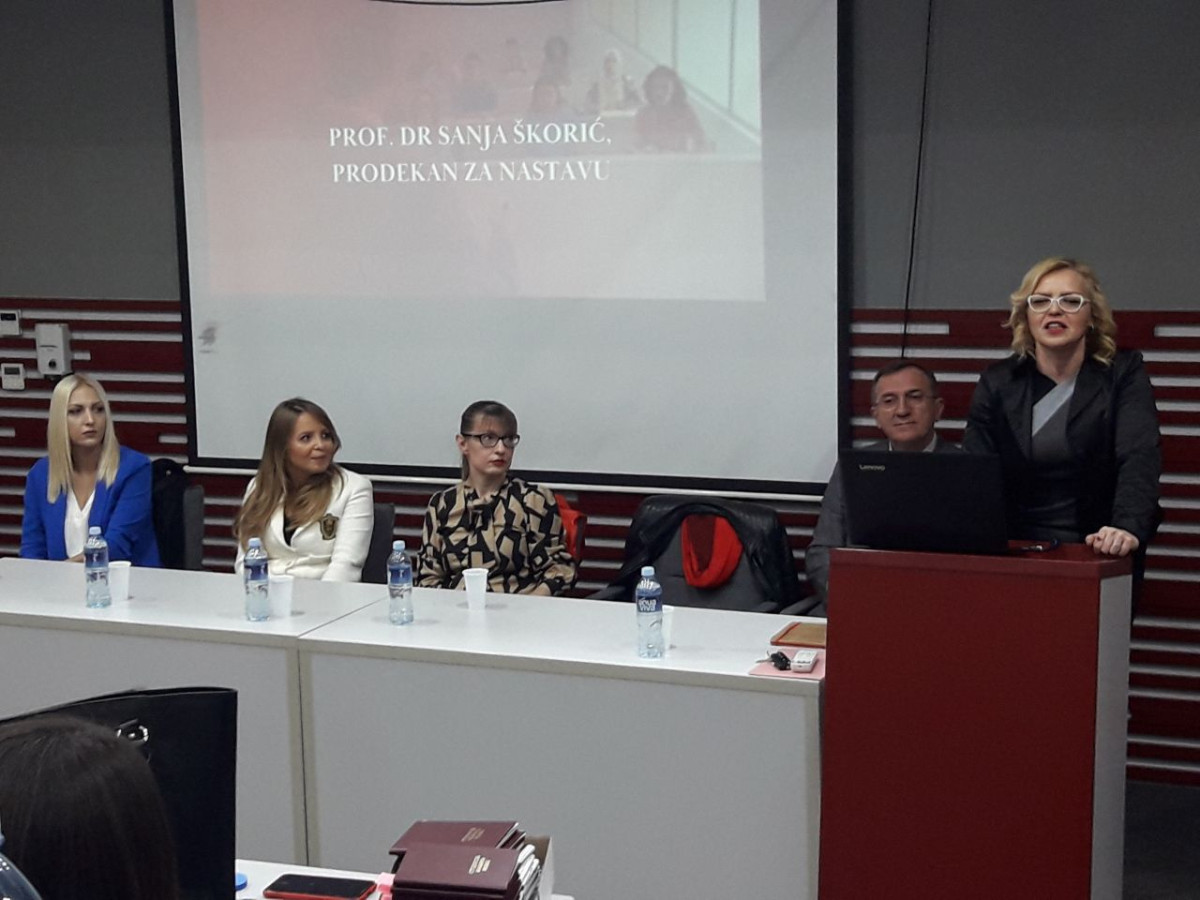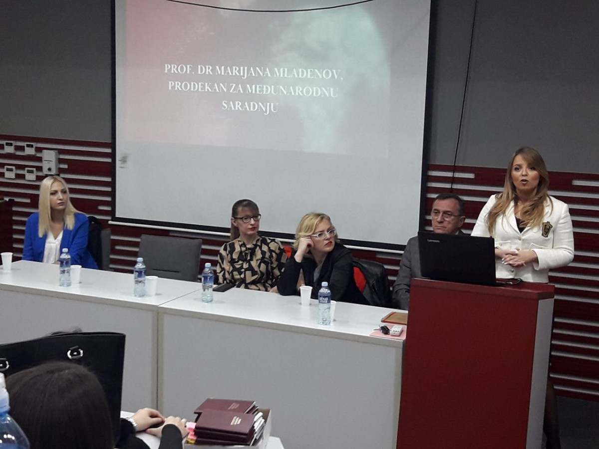 Prof. dr Marijana Mladenov, prodekan za međunarodnu saradnju govorila je o internacionalizaciji i mogućnostima koje studenti i studentkinje master studija Pravnog fakulteta za privredu i pravosuđe imaju kroz programe mobilnosti uspostavljene sa različitim visokoškolskim ustanovama iz celog sveta. Prof. dr Marijana Mladenov je naglasila da su im vrata Kancelarije za međunarodnu saradnju na Fakultetu uvek otvorena. Studentima i studentkinjama se obratila i Doc. dr Maja Petrović, prodekan za kvalitet i razvoj i tom prilikom istakla da se kvalitet Fakulteta ogleda u kvalitetu studenata.