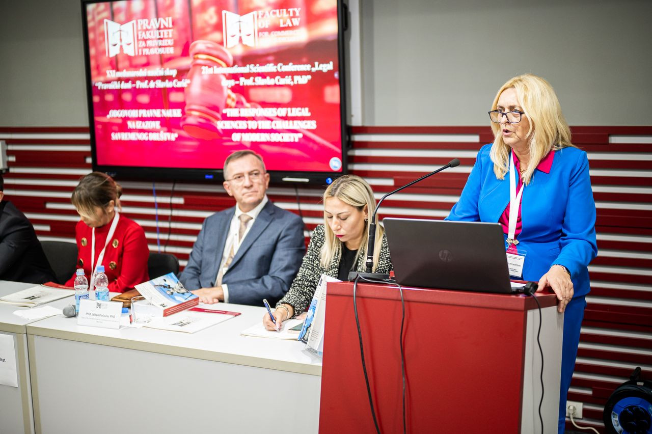 Prof. dr Milan Počuča, dekan Pravnog fakulteta za privredu i pravosuđe istakao je da je događaj posvećen osnivaču fakulteta, prof. dr Slavku Cariću: „Kao naučno istraživačka organizacija koja duže od dve decenije organizuje ovu konferenciju, svesni smo odgovornosti koju nosimo baštineći ideju organizatora i prvog predsednika naučnog odbora pokojnog prof. dr Slavka Carića. Trud koji smo uložili u pripremu ovogodišnje konferencije bio bi uzaludan da nema vas koji ste se odazvali i priložili svoje radove i odvojili dragoceno vreme da se vidimo i da u naredna dva dana razgovaramo, analiziramo, polemišemo i predložimo moguća rešenja u okviru pravne nauke kojom se bavimo.”