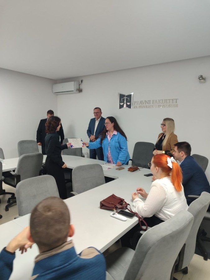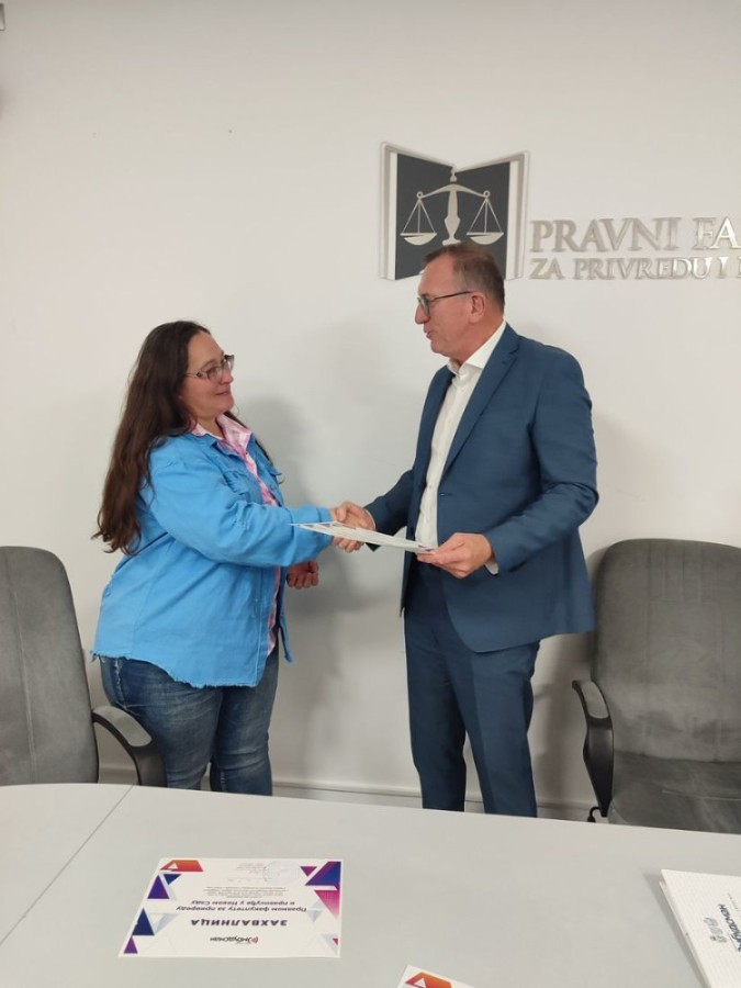 Sertifikate su polaznicima Škole ljudskih prava uručili prof. dr Milan Počuča, dekan Pravnog fakulteta za privredu i pravosuđe u Novom Sadu, doc. dr Dragana Ćorić, Pokrajinska zaštitnica građana - ombudsmanka i prof. dr Jelena Matijašević, prodekan za nauku na Pravnom fakultetu za privredu i pravosuđe u Novom Sadu.