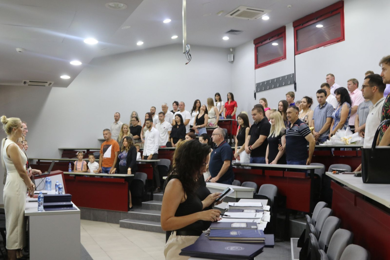 Danas gledam u vas – diplomce 24. generacije Pravnog fakulteta za privredu i pravosuđe – i u vašim očima prepoznajem nešto što ne može da se oceni ocenama, ne meri se prosekom, ne vidi se na papiru: zrelost, snagu i spremnost da preuzmete odgovornost. Odgovornost ne samo za sebe, već i za zajednicu, društvo i budućnost.