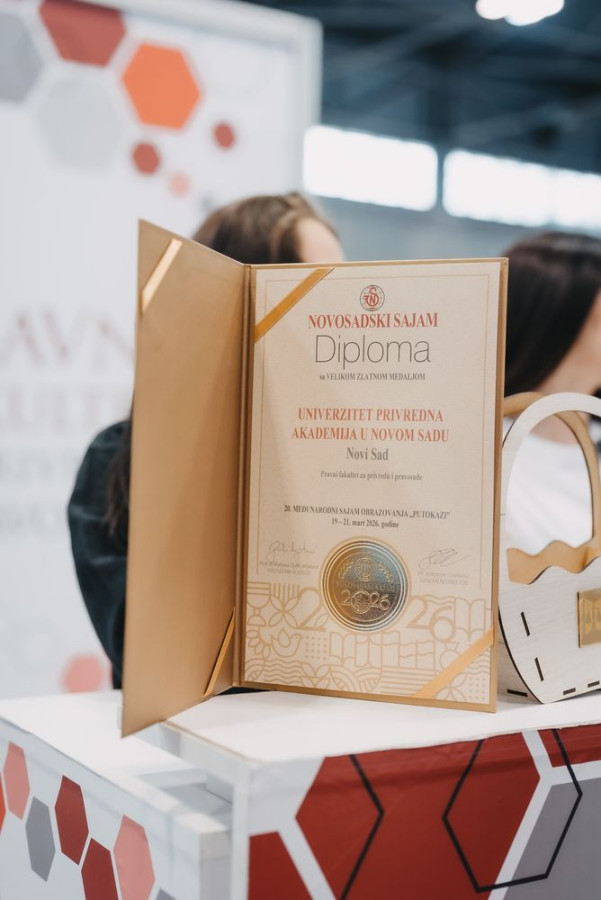 Poseban uspeh ostvaren je ove godine, budući da je Pravni fakultet za privredu i pravosuđe osvojio Veliku zlatnu medalju Novosadskog sajma za kvalitet u oblasti obrazovanja, po oceni stručne komisije. Univerzitet Privredna akademija u Novom Sadu u čijem sastavu posluje i fakultet proglašen je za šampiona kvaliteta u oblasti obrazovanja i nagrađen je peharom koji su dodeli generalni direktor Novosadakog sajma g. Slobodan Cvetković i prof. dr Marijana Dukić Mijatović, predsednica stručne komisije za ocenu kvaliteta vaspitno-obrazovnih ustanova.