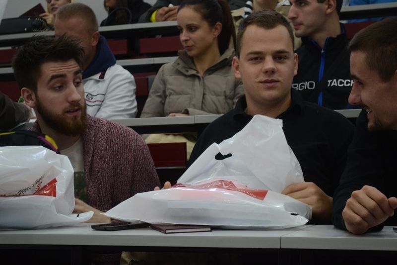 Studentima se toplim rečima dobrodošlice obratio dekan Pravnog fakulteta, prof. dr Marko Carić. Tokom svečanog prijema predstavljeni su svi profesori sa kojima ce se studenti susretati tokom studiranja, a prodekan za nastavu prof. dr Milorad Bejatović upoznao je studente sa nastavnim procesom. Svim brucošima dodeljeni  su udžbenici za prvi semestar.